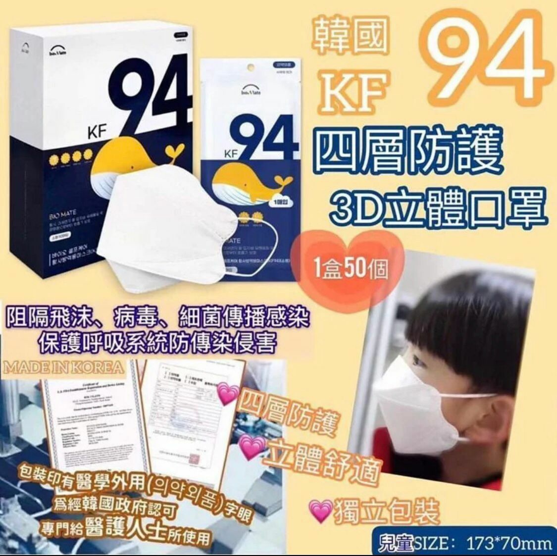 韓國Bio Mate兒童KF94四層防護3D立體口罩1盒50個